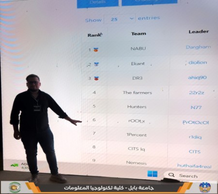 مشاركة متميزة لطلبة كلية تكنولوجيا المعلومات في المسابقة الوطنية للأمن السيبرانيضحى فاضل عباس شهدت كلية تكنولوجيا المعلومات – جامعة بابل إنجازًا جديدًا يضاف إلى سجلها العلمي تمثل بمشاركة الطالب حسين علي سعد من قسم الأمن السيبراني في المسابقة الوطنية للأمن السيبراني التي نظمتها CyberTalents بالتعاون مع مركز الأمن السيبراني.المسابقة تعد واحدة من أبرز المنافسات العالمية في مجال الأمن السيبراني، إذ تشمل نطاقا واسعا يمتد عبر قارتي آسيا وأفريقيا، وتضم تحديات نوعية متقدمة في مجالات: Web Security, Reverse Engineering, Digital Forensics, Network Security, Bash .وقد جرت التصفيات الأولية للحدث بشكل إلكتروني (Online) بمشاركة واسعة، حيث تأهل فقط 80 متسابقًا من مختلف الجامعات والدول، ليتنافسوا حضوريًا في المرحلة النهائية. وتمكّن الطالب حسين علي سعد من تحقيق إنجاز مميز بحصوله على المركز السادس على مستوى العراق ليعكس بذلك مستوى الكفاءة والمهارات التي يكتسبها طلبة قسم الأمن السيبراني في الكلية.تؤكد هذه المشاركة أن كلية تكنولوجيا المعلومات ماضية في تمكين طلبتها من خوض غمار المنافسات العلمية العالمية وصقل مهاراتهم في مجالات المستقبل، بما يواكب التطورات المتسارعة في ميدان الأمن السيبراني.