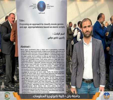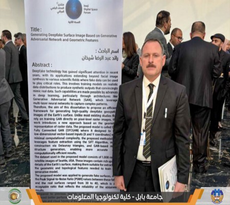 كلية تكنولوجيا المعلومات تتألق في منتدى الفضاء الرقمي العراقي النسخة الثانيةضحى فاضل عباس نجحت كلية تكنولوجيا المعلومات بجامعة بابل في ترك بصمة متميزة خلال مشاركتها في فعاليات منتدى الفضاء الرقمي العراقي النسخة الثانية، الذي أقيم تحت عنوان (البنية التحتية الرقمية العامة) بتنظيم من قبل المركز الوطني للأمن السيبراني بالتعاون مع مستشارية الأمن القومي على أرض قرية دجلة حيث شهد المنتدى مشاركة واسعة من مختلف الجامعات العراقية بما مجموعه 200 بحث وأطروحة، وتم اختيار عشرة بحوث لعرضها على شكل بوسترات، كان نصيب كلية تكنولوجيا المعلومات منها أربعة بحوث تعكس مستوى الابتكار العلمي والتميز الأكاديمي للكلية.تميزت الكلية أيضًا على مستوى الإلقاء، إذ تم اختيار خمسة بحوث فقط لعرضها شفهياً، وكان من بين الفائزين في هذا المجال الباحثان من قسم البرمجيات، وهم الدكتورة سوزان محمد علي صلح بإشراف الدكتور أحمد مهدي محمد سعيد، وأطروحة الدكتور رائد عبد الرضا شيخان بإشراف الدكتور توفيق عبد الخالق عباس، حيث أظهرت الأبحاث المقدمة قدرة عالية على الابتكار العلمي وتطبيق أحدث التقنيات في مجالات الأمن السيبراني والذكاء الاصطناعي.تميزت أطروحة الدكتورة سوزان بتركيزها على كشف الحسابات الوهمية وحمايتها في شبكات التواصل الاجتماعي باستخدام تقنيات التعلم الآلي والبلوك تشين، حيث قدمت منهجية مبتكرة لرصد الأنماط المشبوهة وحماية حسابات المستخدمين بشكل ذكي وآمن. أما أطروحة الدكتور رائد فركزت على توليد صور عميقة مزيفة (Deepfake) باستخدام الشبكات التنافسية التوليدية والخصائص الهندسية للصور، بهدف تطوير أساليب كشف وتوليد المحتوى البصري الاصطناعي بطريقة دقيقة، مما يفتح آفاقًا جديدة في تطبيقات الذكاء الاصطناعي والأمن السيبراني.كما شهد المنتدى مشاركات من كلية تكنولوجيا المعلومات أيضًا أطروحة رنا عباس رضا رجب من قسم شبكات المعلومات بإشراف الدكتور ألْحارث عبد الكريم عبدالله، والتي تناولت موضوع تعزيز أمن ملفات الرعاية الصحية باستخدام أنظمة تخزين متقدمة وتقنية البلوك تشين، إضافة إلى أطروحة ياسين خضير عباس من قسم البرمجيات بإشراف الدكتور أحمد حبيب العزاوي، التي ركزت على تصنيف الأفلام وفق النوع والفئة العمرية اعتمادًا على نصوص الأفلام. وقدمت جميع الأطروحات عرضًا تقديميًا مدته ثلاث دقائق، ما أتاح للحضور الاطلاع على أحدث التجارب والأفكار الابتكارية.واستقطب المنتدى حضورًا واسعًا لممثلين عن المؤسسات الحكومية والقطاع الخاص والمؤسسات الأكاديمية، بالإضافة إلى منظمات دولية، حيث تم خلاله مناقشة محاور رئيسية ترتبط بالهوية الرقمية والحوكمة الرقمية والدفع الرقمي وتكامل البيانات، بما يسهم في تعزيز البنية التحتية الرقمية الوطنية وإرساء أسس فضاء رقمي متكامل.إن فوز أطروحات الباحثان ضمن أفضل الأبحاث المشاركة يعكس جودة البحث العلمي في كلية تكنولوجيا المعلومات، ويؤكد دور الكلية الفاعل في دعم الابتكار وتمكين طلبتها وأعضاء هيئة التدريس من المساهمة في إثراء الحراك العلمي الوطني والدولي.