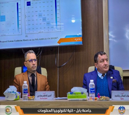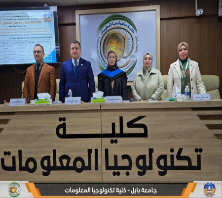 مناقشة رسالة ماجستير في كلية تكنولوجيا المعلومات حول اكتشاف الشذوذ في الشبكات باستخدام نهج تعلم عميق هجينضحى فاضل عباسشهد قسم شبكات المعلومات في كلية تكنولوجيا المعلومات – جامعة بابل مناقشة رسالة ماجستير للطالبة فاطمة حيدر جاسم، الموسومة بعنوان: “نهج تعلم عميق هجين لاكتشاف الشذوذ في الشبكات يعتمد على المشفر التلقائي المتفرق والشبكة العصبية الالتفافية”، وذلك بإشراف الأستاذ المساعد الدكتور أمير كاظم هادي. جرت المناقشة في أجواء علمية أكاديمية عكست المستوى المتقدم للبحث والاهتمام المتزايد بقضايا أمن الشبكات وتقنيات الذكاء الاصطناعي الحديثة.سلطت الرسالة الضوء على التطور المتسارع للهجمات الإلكترونية وما تفرضه من تحديات كبيرة أمام أنظمة كشف التسلل التقليدية القائمة على التوقيعات، والتي غالبًا ما تعاني من ضعف في اكتشاف الهجمات الجديدة ومحدودية القدرة على التعميم عند التعامل مع فئات قليلة من بيانات الهجوم.وقدمت الباحثة نظامًا هجينًا مبتكرًا يعتمد على تقنيات التعلم العميق، حيث دمجت بين المشفر التلقائي المتفرق (SAE) لاستخراج الميزات عالية الجودة وتقليل الأبعاد، والشبكة العصبية الالتفافية (CNN) لتحقيق تصنيف دقيق لحركة المرور الشبكية واكتشاف الاختراقات. كما تم تضمين آلية انتباه ضمن بنية النظام لتعزيز قدرة النموذج على التركيز على السمات الأكثر أهمية وسياقية في التعرف على السلوك الشاذ.وأظهرت نتائج البحث تفوق النظام المقترح عند اختباره على مجموعات بيانات معيارية مثل NSL-KDD وCICIDS2017، حيث حقق نسب دقة عالية مقارنة بالدراسات السابقة، بلغت 99% على مجموعة بيانات CICIDS2017. كما سجل النظام دقة وصلت إلى 100% عند تقييمه على مجموعة بيانات حقيقية، مما يعكس كفاءته في بيئات العمل الواقعية.ولتعميق اختبار الأداء العملي، أجرت الباحثة تجربة محاكاة آنية تحاكي ظروف حركة مرور الشبكة الفعلية، وأظهرت النتائج قدرة النظام على الكشف الفوري والديناميكي عن الشذوذ والاستجابة السريعة للتهديدات المحتملة.وأكدت الدراسة أن النهج المقترح يمثل إضافة نوعية في مجال أمن الشبكات، من خلال الجمع بين كفاءة استخراج الميزات ودقة التصنيف، بما يسهم في تعزيز موثوقية أنظمة الكشف عن التسلل ومواكبة التحديات المتزايدة في بيئات الشبكات الحديثة.